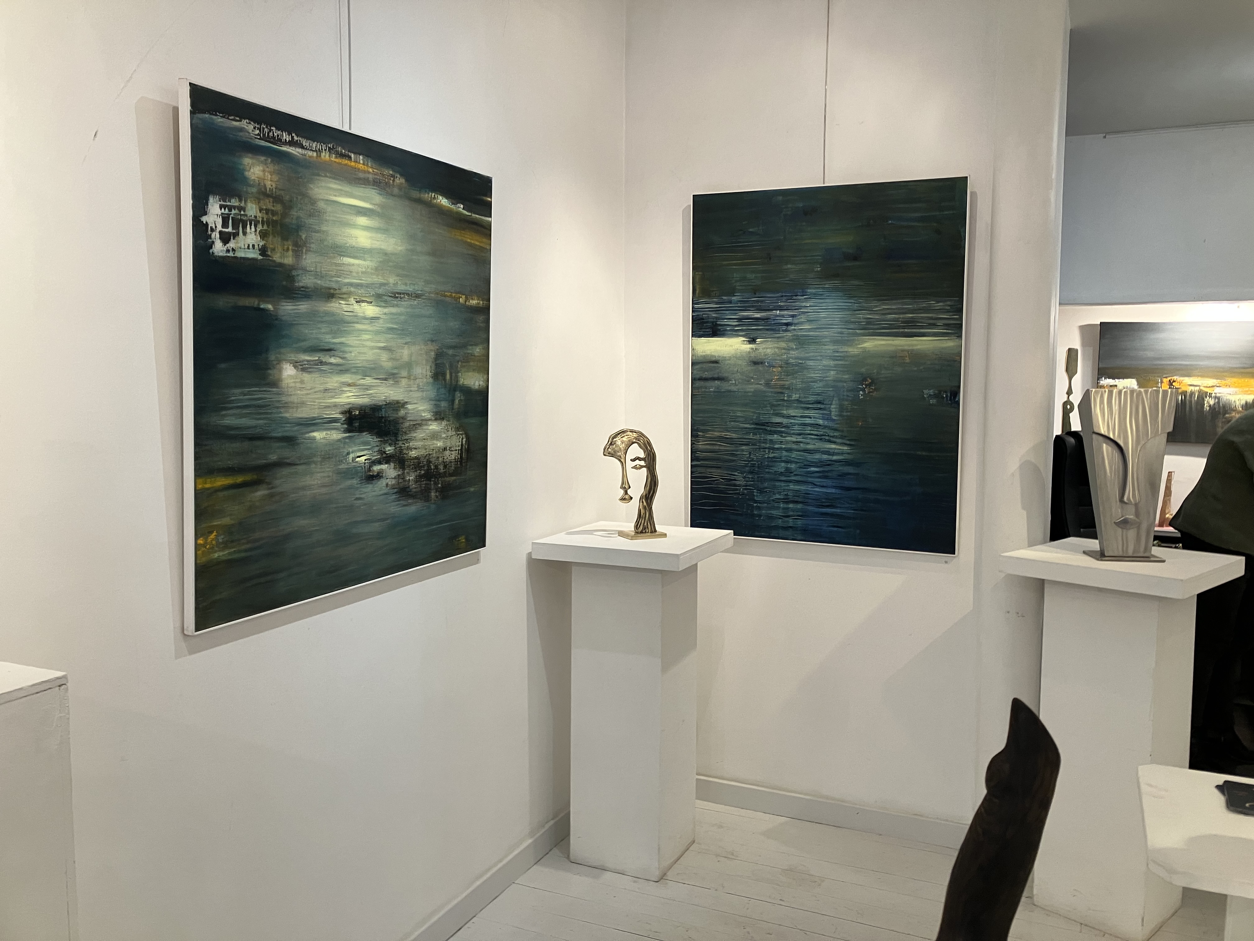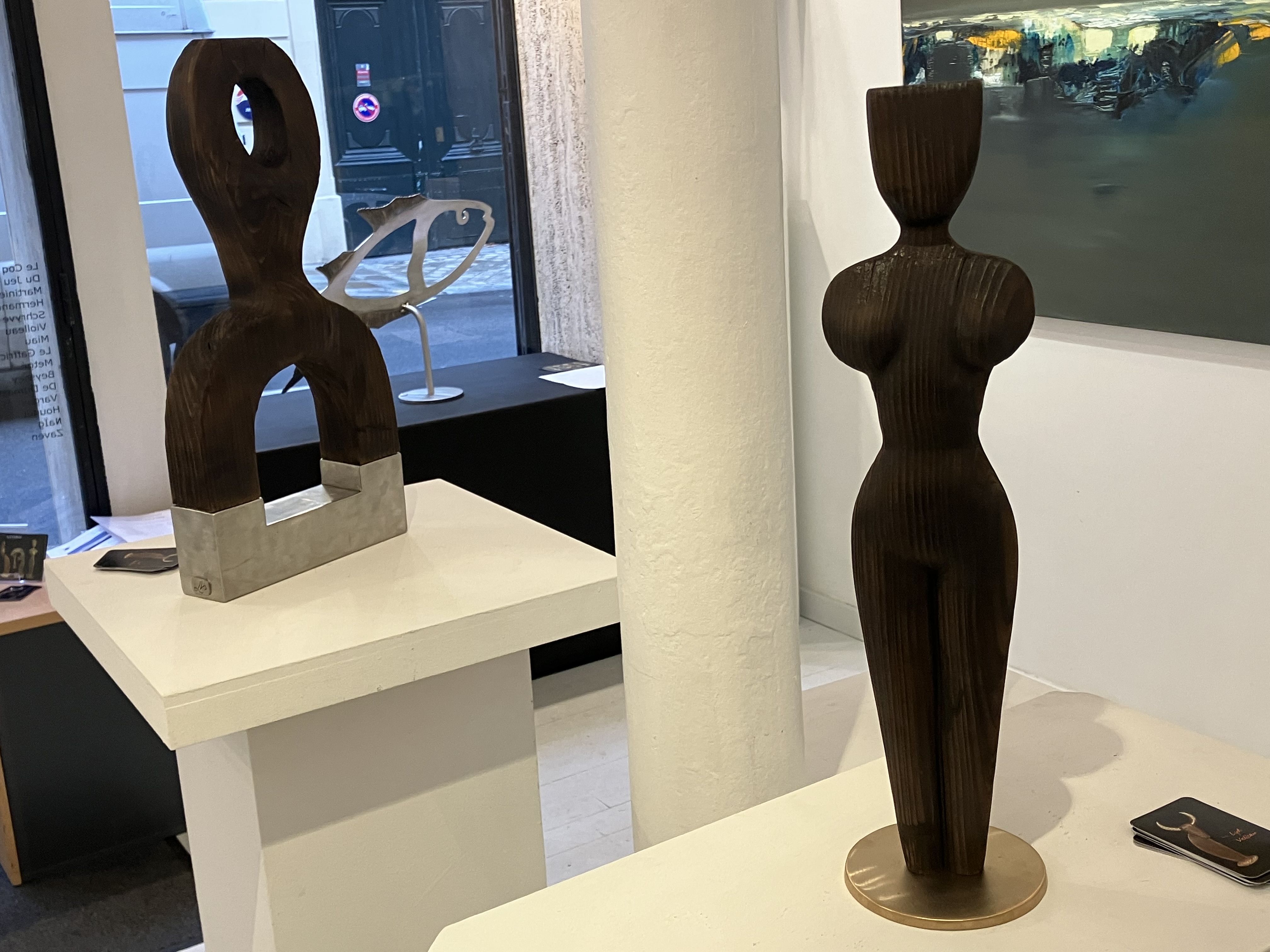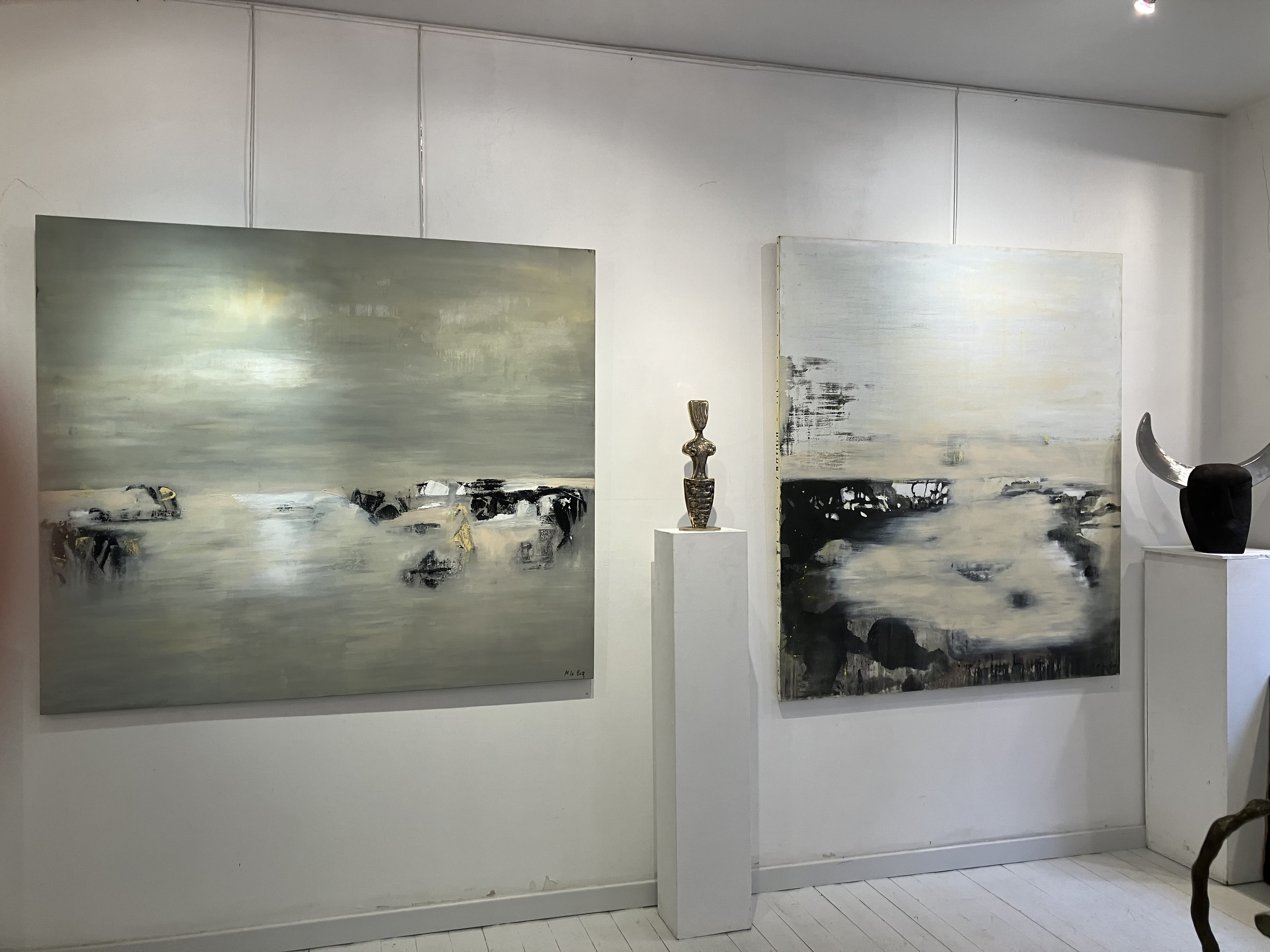 Les deux artistes ici avec leurs créations récentes – de nouveaux horizons et de belles envolées dans leurs univers- un grand bonheur que cette visite.