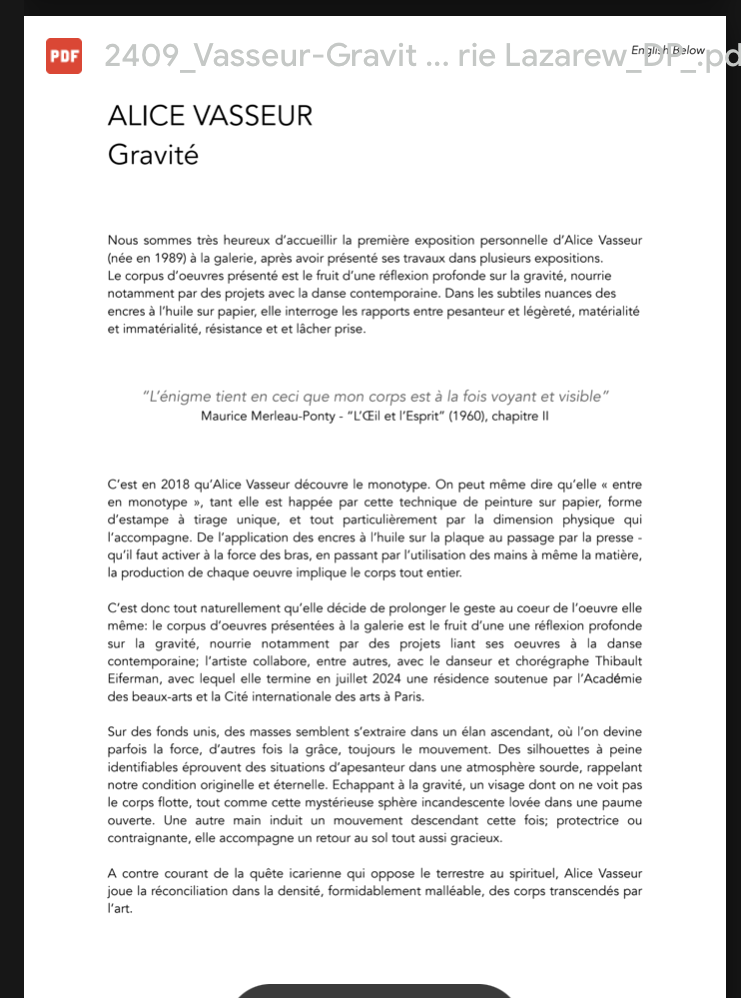 Comments: Commentaires fermés sur Galerie Lazarew « Alice Vasseur – Gravite » 31 Août 2024.