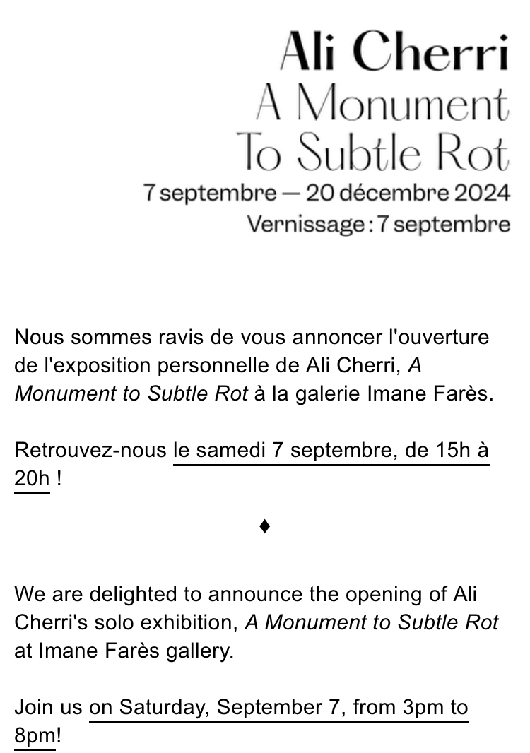 Comments: Commentaires fermés sur Galerie Imane Farès » Ali Cheri » à partir 7 Septembre 2024.