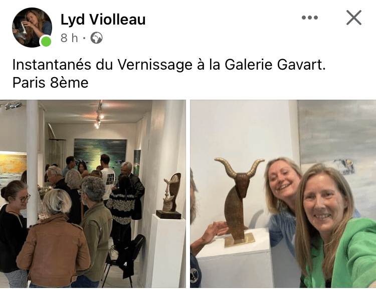 L’exposition avec les belles créations de Lyd Violleau -l’artiste nous présente pour la seconde fois son beau travail , des oeuvres dans différents matériaux ,on trouve ici une sensibilité vibrante de la forme -et vitalité et audace ,- les deux artistes – une belle dualité pour ce voyage dans l’Art.