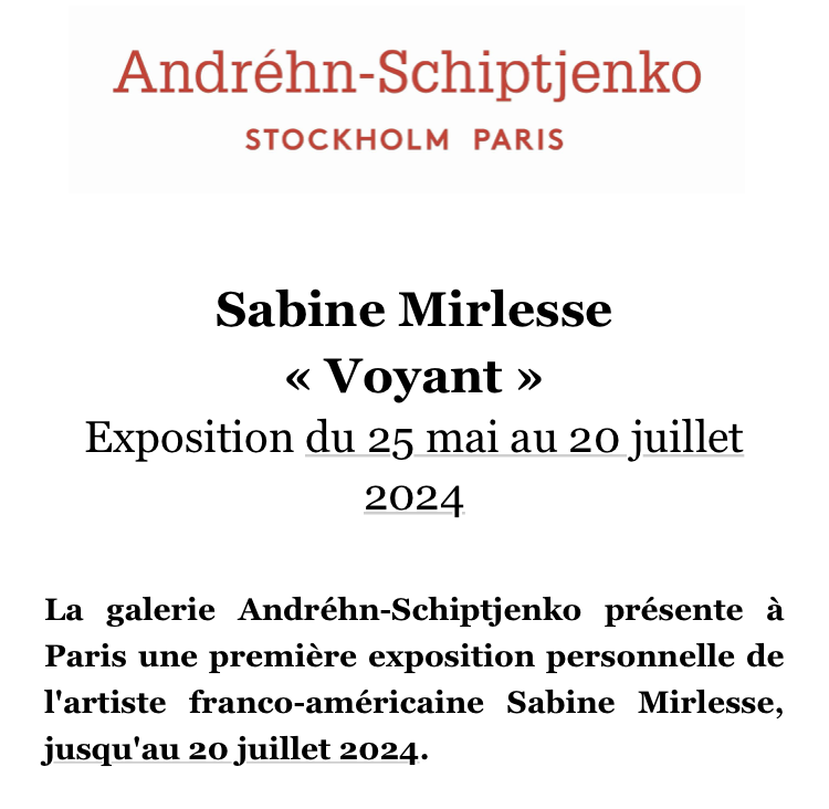 Comments: Commentaires fermés sur Galerie Andréhn-Schiptjenko – exposition Sabine Mirlesse – 25 Mai au 20 Juillet 2024.