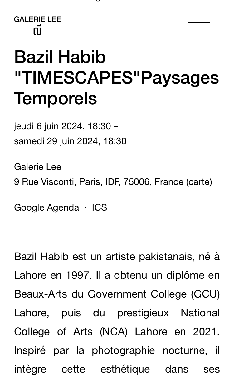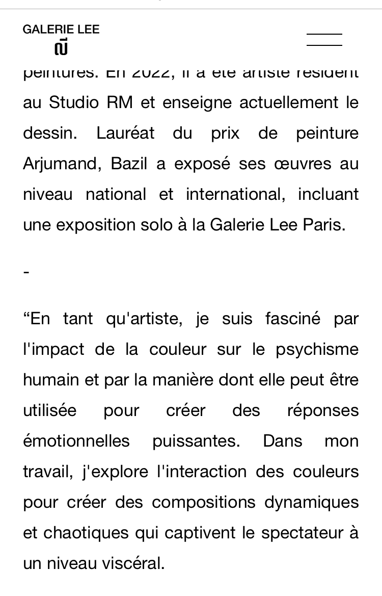 Comments: Commentaires fermés sur Galerie Lee » à partir du 6 Juin 2024. exposition Bazil Habib.