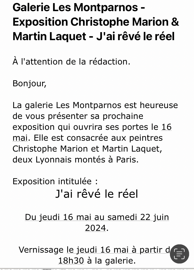 Comments: Commentaires fermés sur Galerie Les Montparnos – exposition Christophe Marion & Martin Laquet – « J’ai rêver le réel » à partir du 16 Mai 2024.