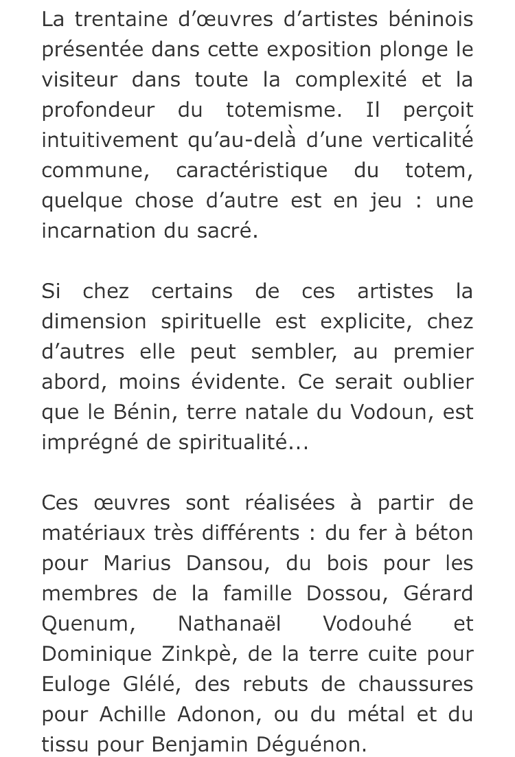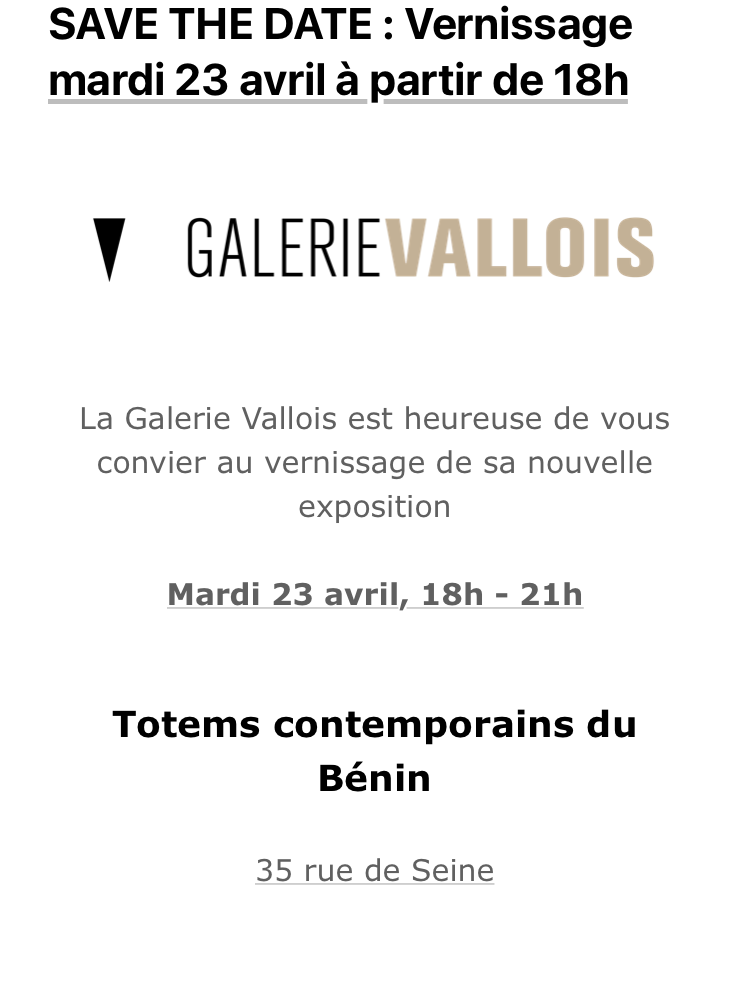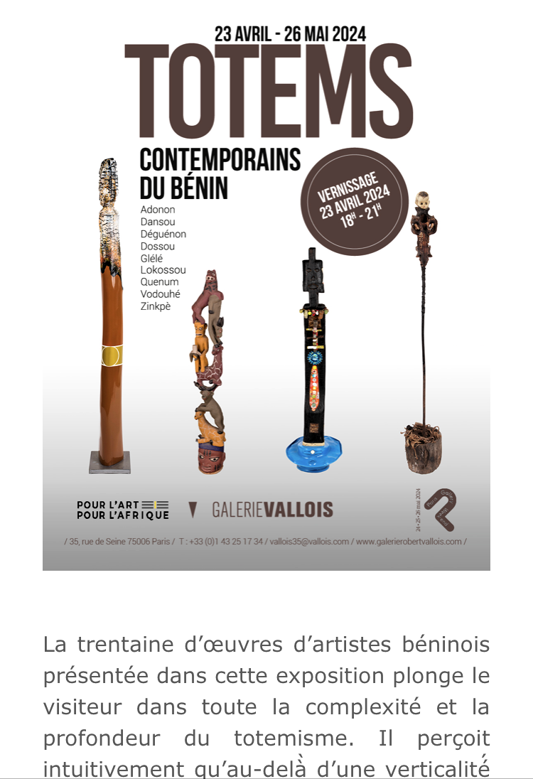 Comments: Commentaires fermés sur Galerie Vallois « Totems contemporains du Bénin » le 23 Avril 2024.