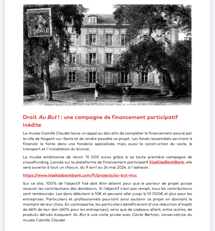 Comments: Commentaires fermés sur Musée Camille Claudel » Droit au But » un financement participatif.