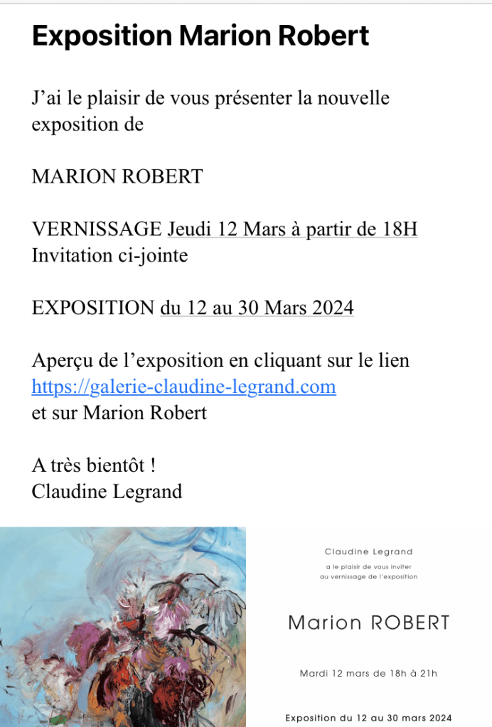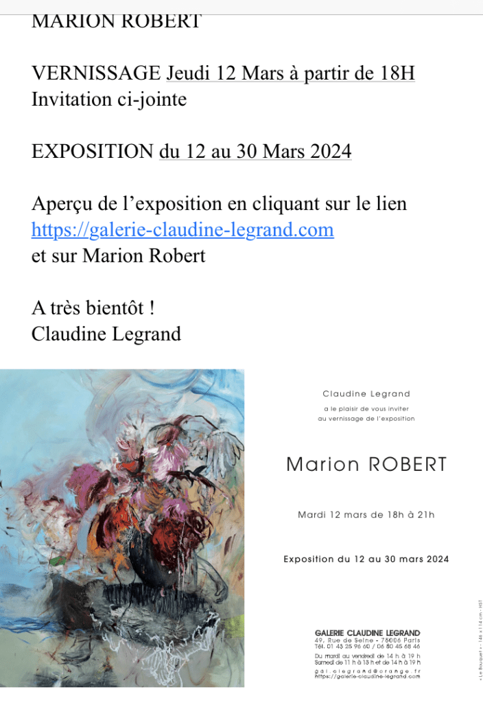 Comments: Commentaires fermés sur Galerie Claudine Legrand – exposition Marion Robert- à partir du 12 Mars 2O24.